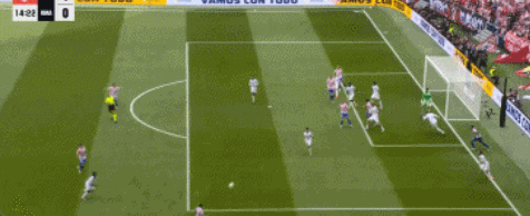 第50分钟,居勒尔禁区内抬脚解围踢到了冈萨雷斯,马竞获得点球,随后阿尔瓦雷斯点射命中,比分3-2反超。