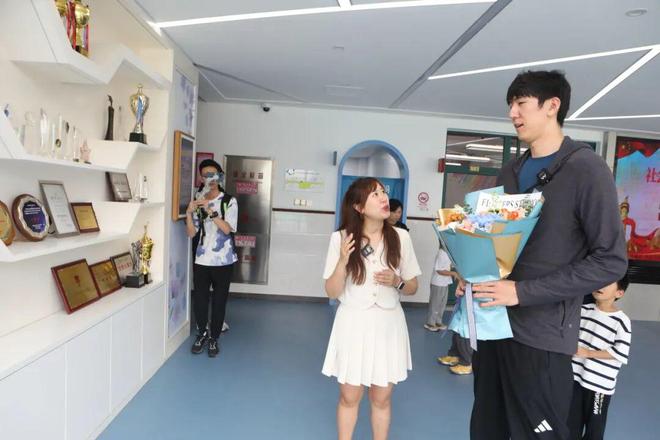 温馨的互赠礼物环节接踵而至。杨浦区回民小学书记田玲代表全校师生,将同学们在特色课程中创作的作品送给张哲嘉老师;张老师也回赠了一件亲笔签名的T 恤,将自己对同学们的期待与鼓励融入其中。双方手持礼物合影,镜头定格下这一充满情谊的瞬间。