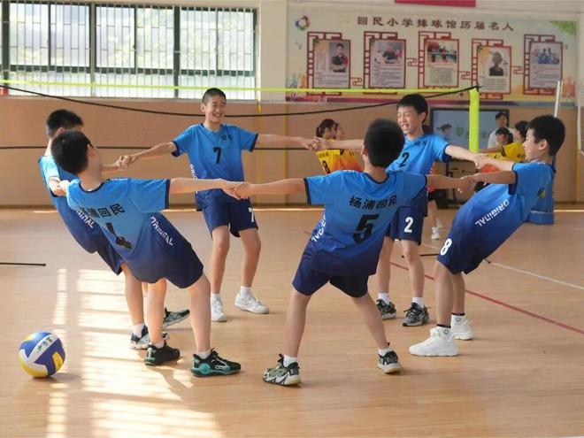 作为上海市“小学男子排球”传统项目学校,回民小学将排球运动深度融入体育教学:一方面,实践排球大单元教学与项目化学习,打破学科壁垒,实现多学科知识的有机联动;另一方面,以排球运动为载体,将“顽强拼搏、永不言弃”的体育精神融入日常训练与赛事体验,让“敢拼搏、勤思考、乐合作”成为学生品格的重要底色。